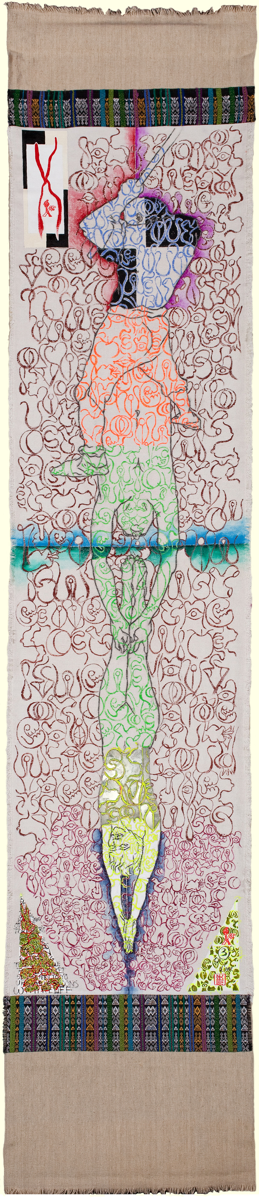 2010, Acrylic and ink on hemp linen; 16 X 79 inches
