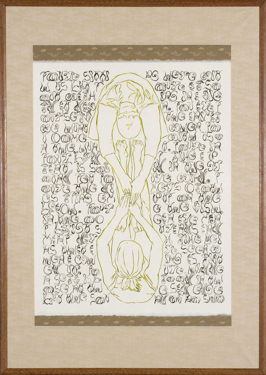 2000, ink and acrylic on paper in single panel screen